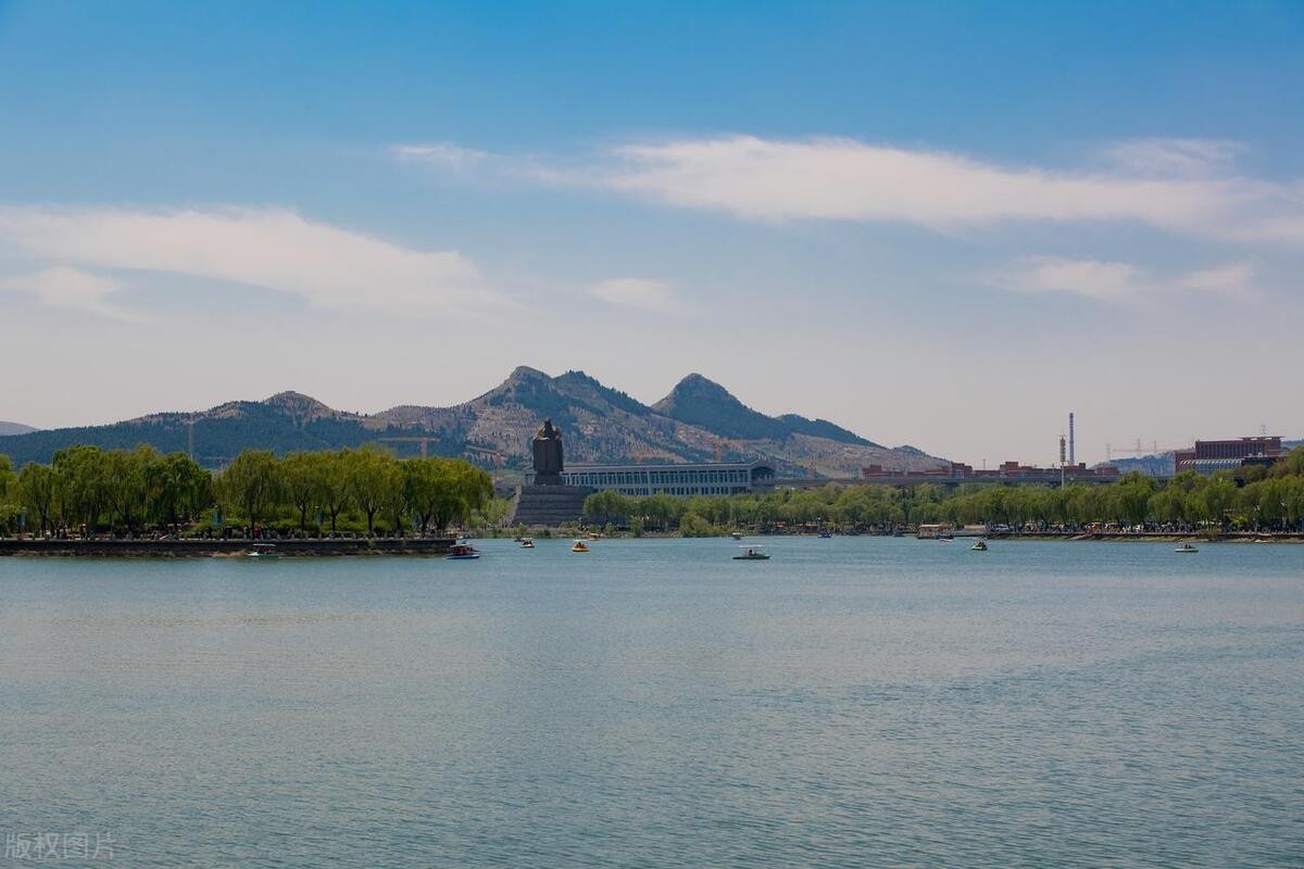 大明湖位于济南市中心,是济南市区最大的湖泊。湖水清澈透明,湖面上有亭台楼阁,四周杨柳垂挂,鸟语花香,宛如人间仙境。每年春天,湖畔的樱花盛开,湖水映衬之下格外美丽,是摄影爱好者的天堂。