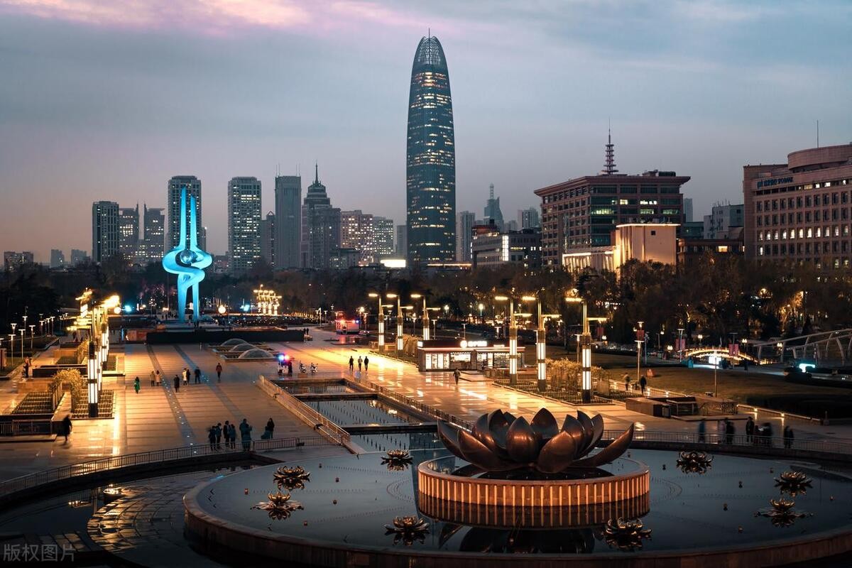 泉城广场是济南最大的市民休闲广场,广场周围有现代化的购物中心和各类餐饮店,是当地居民常去的休闲娱乐中心。夜晚灯光璀璨,音乐喷泉更增添了一份浪漫氛围。