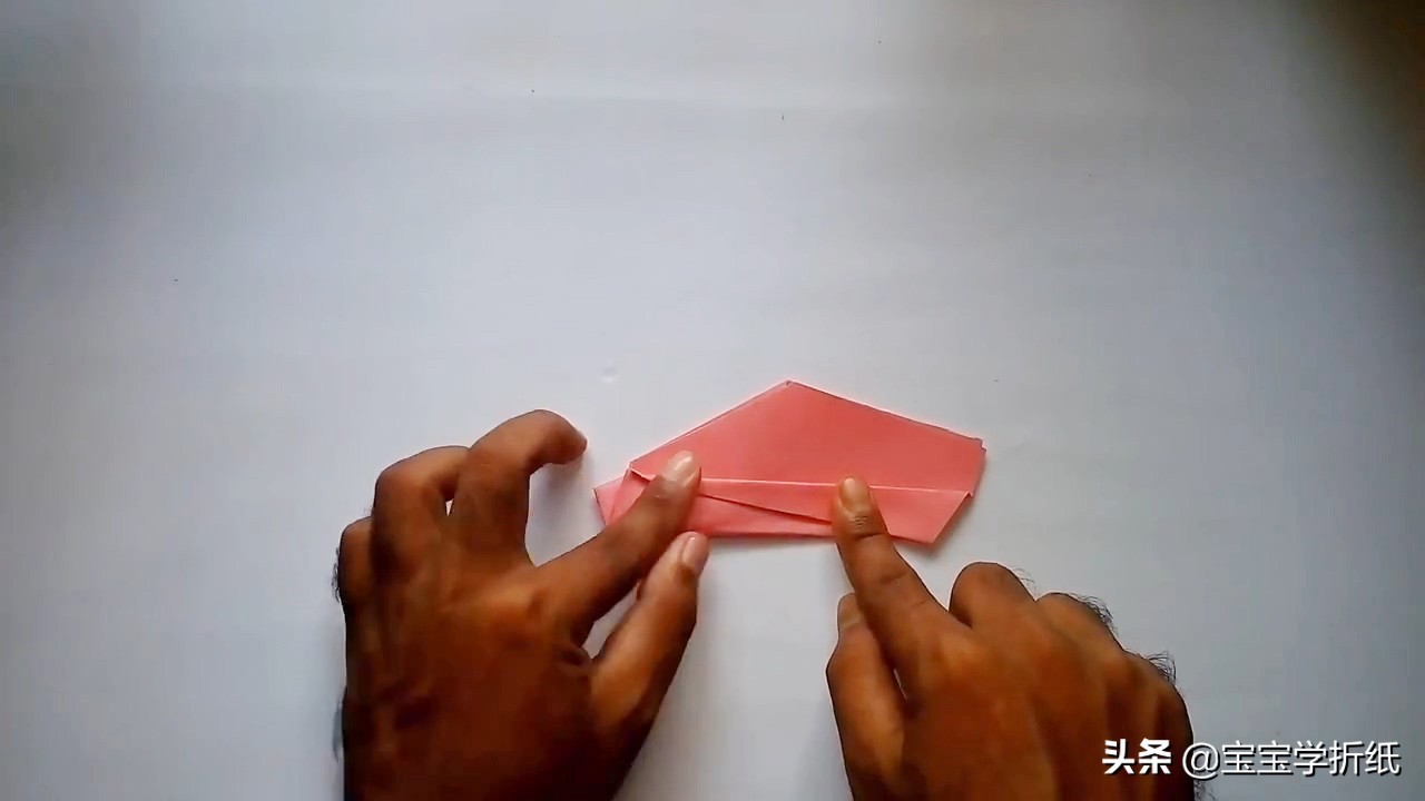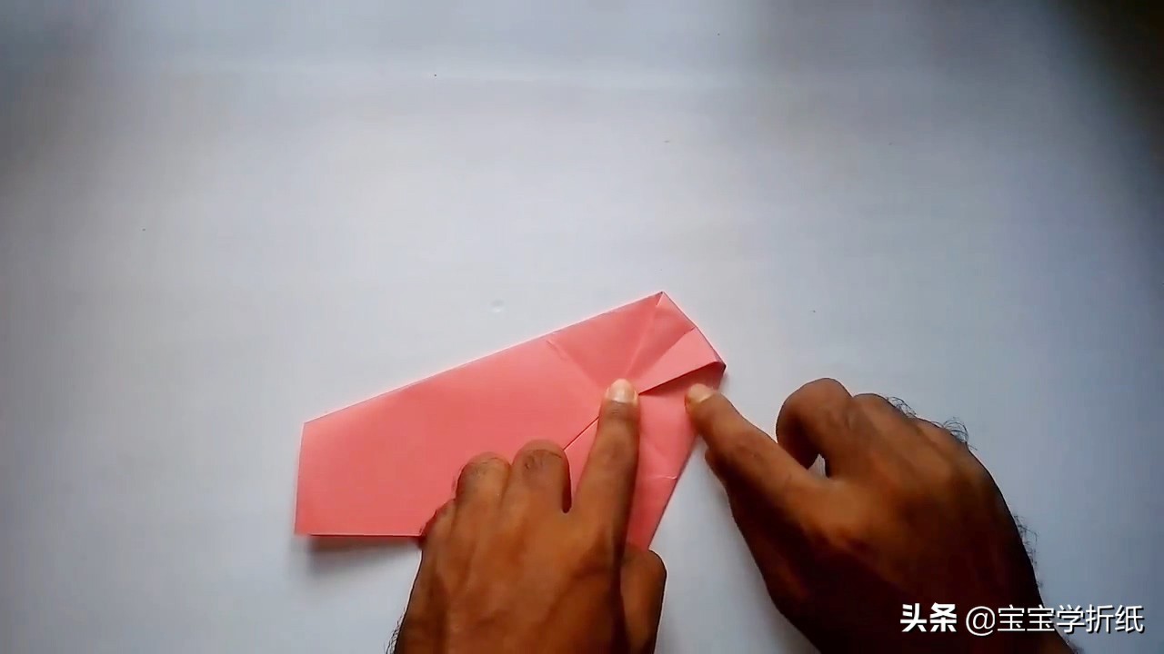 7.再把头部尖角往下折到尾部端点。