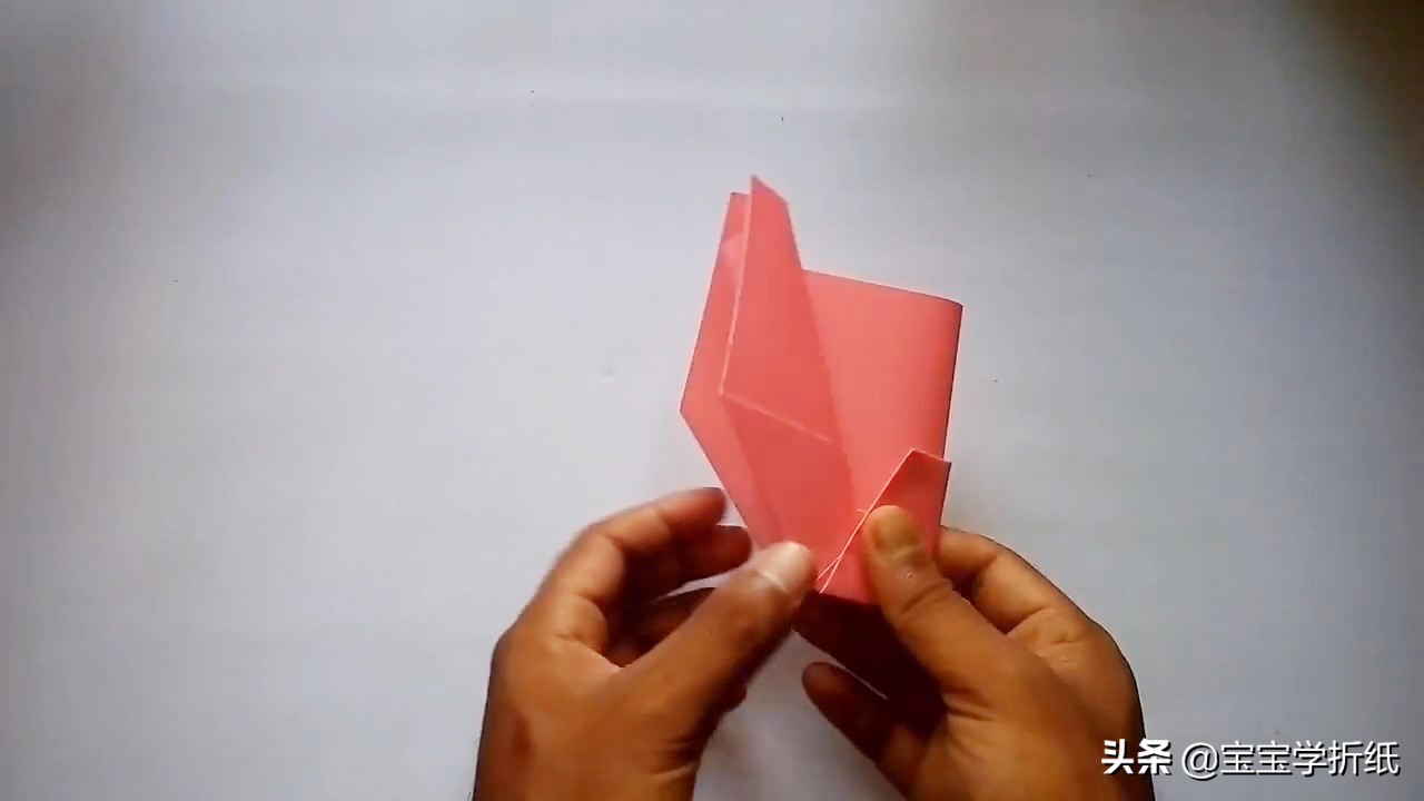 6.把左边角折到中心线。