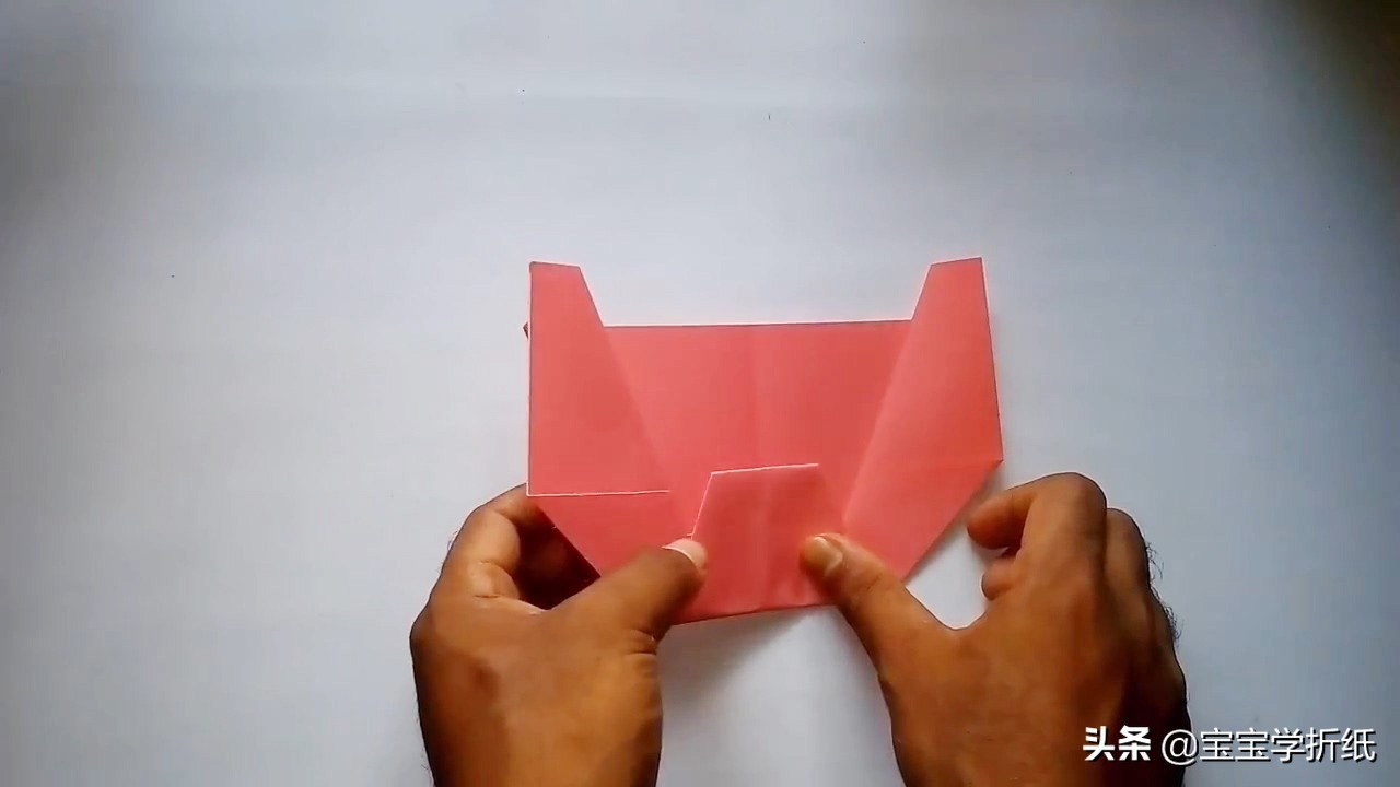 16.再把头部尖角插入到中间间隙中,