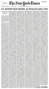 特朗普周日(24日)又去打高尔夫球了。此前一天,他因被发现打高尔夫球而被美国舆论激烈批评。当日,美国《纽约时报》提前公布记录美国新冠肺炎疫情10000名逝者个人信息的头版图片,与特朗普挥杆的照片形成鲜明对比。