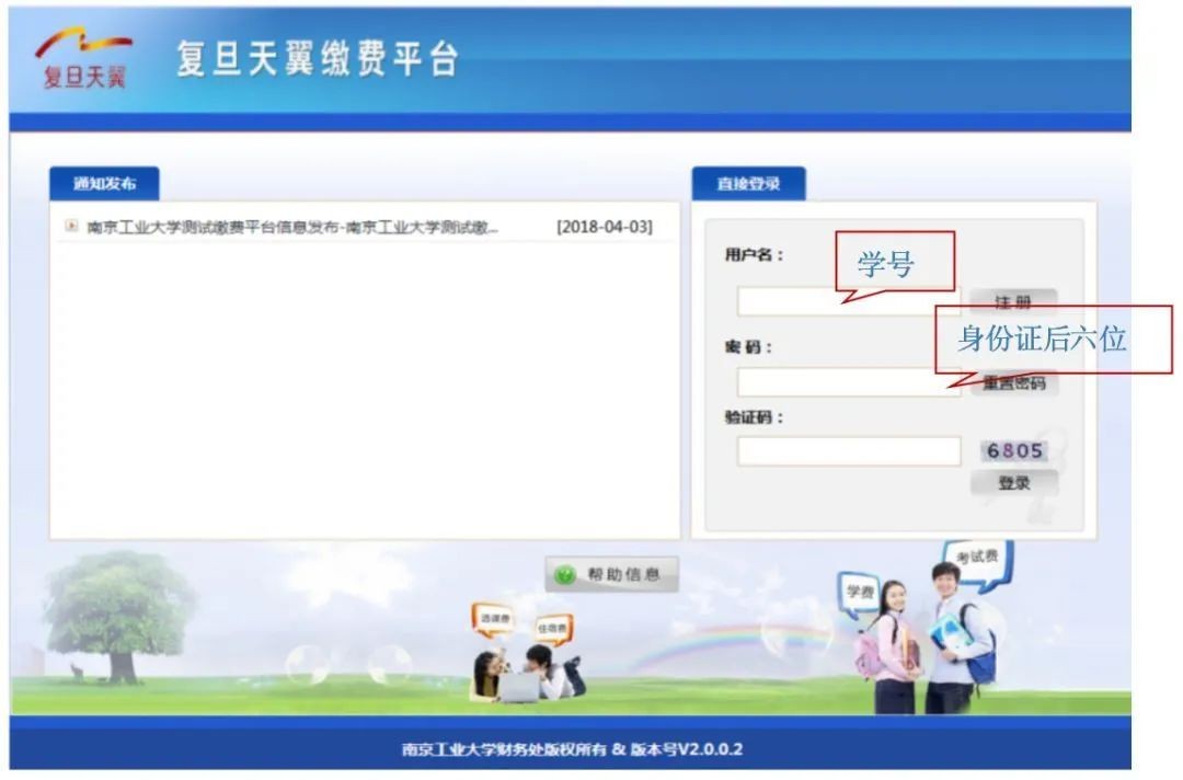 (用户名:学号,初始密码:身份证号码后六位)。
