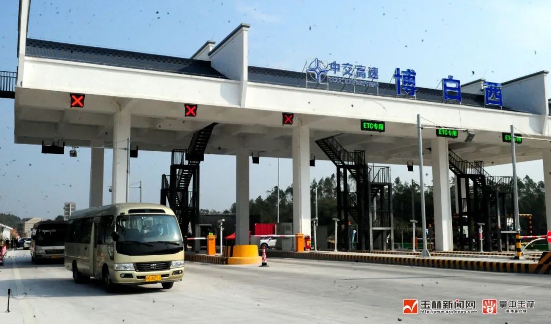 通车仪式后,汽车通过博白西收费站,驶入浦清高速公路。