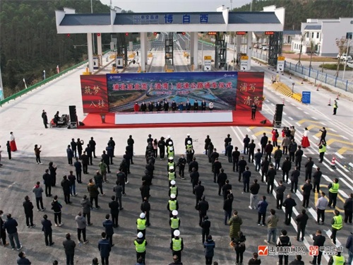 12月29日上午10时许,浦北至北流(清湾)高速公路(简称浦清高速公路)通车仪式在浦清高速公路博白西收费站站前广场举行,标志着浦清高速公路正式建成通车,从广西钦州市浦北县到广东省界由原来的4小时缩短至1小时30分钟,为广西拥抱粤港澳大湾区提供强有力的交通支撑。