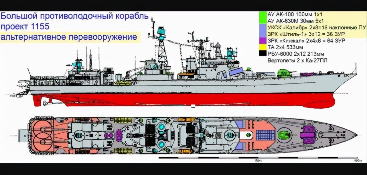 另外,俄海军还对1155型反潜舰中的572“维诺格多夫海军上将”号,进行现代化改造提升工作,揣测也将具备装载32枚巡航导弹的能力。