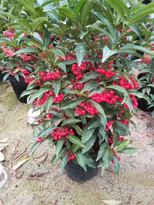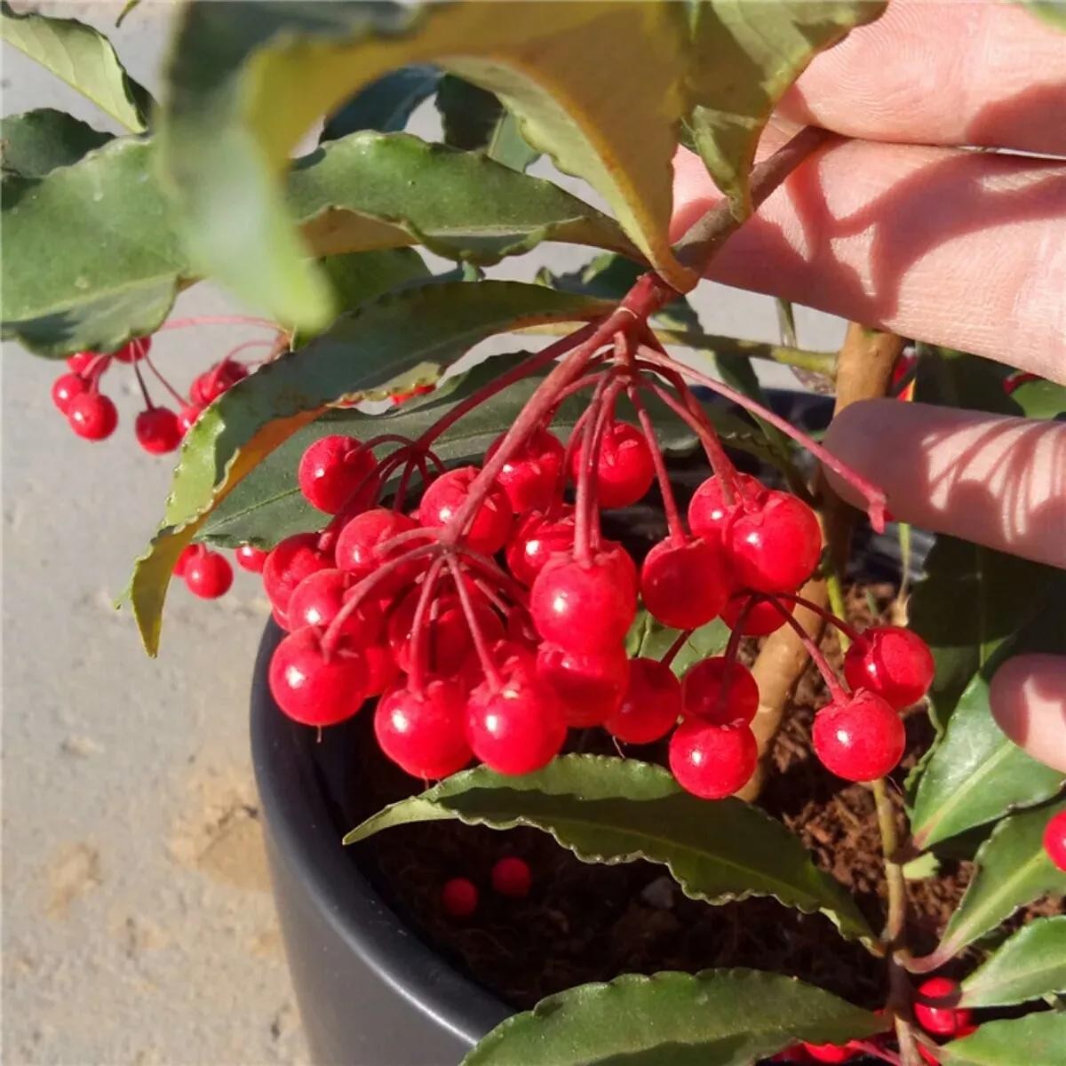 富贵籽株型美观大方,果色鲜红欲滴,果实累累,粒粒色质一致,在翠绿叶片的衬托下,更加鲜艳夺目,串串红果给人以温馨、热烈、喜庆、吉祥的感觉,观赏性极强。