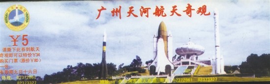 广州航天奇观地处广州天河东圃镇,首期工程占地21万平方米,由当地农民自行集资两亿多元兴建,是一个以航天航空为主旨的主题公园,融科技、科幻、游乐于一体。公园内除了陈列有中、美、俄、法等国发射的火箭和卫星的实物和模型外,还有实体导弹和仿真导弹以及战斗机等展示,其中最引人注目的是当地农民用巨资购买的我国长征三号乙运载火箭实体,这是当时我国运载能力最大、性能最优的火箭,曾在珠海国际航展中轰动一时。 广州航天奇观1997年开业,2011年停业。