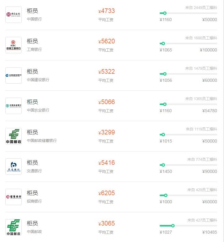 我就从各种吐槽、晒单、评论中拔了一些柜员的工资。