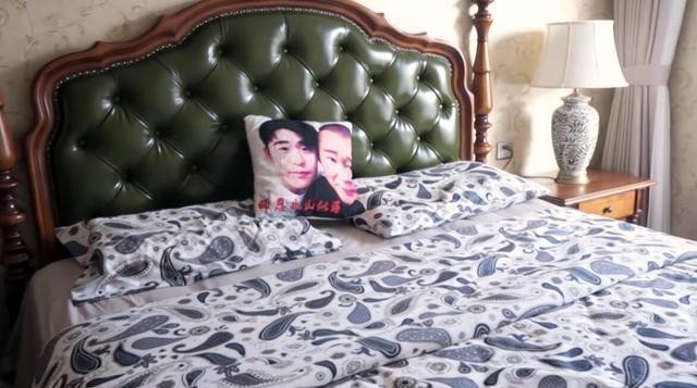 在卧室的床上还摆放了张云雷和师傅合影的抱枕