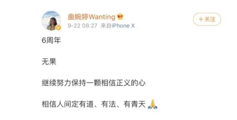 在东窗事发后,曲婉婷再也没回国,但一直通过社交媒体账号为母亲声援和辩解,试图以文字的力量为母亲洗脱冤屈。在这些发声中,曲婉婷不仅分享了自己的感受,还试图引导公众的目光,去看到事件背后的复杂性与细节,她坚信母亲是清白的,并试图用这种方式证明母亲的清白。