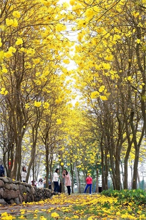 春到枝头颜色俏。一月溪头村的桃花沿溪盛开,人面桃花相映其间;二月吕田村的李花漫山遍野,洁白似雪;三月莲麻村的油菜花田,金黄一片;城区的木棉红红火火:还有四月西塘村的樱花、玫瑰、郁金香……七彩花田映衬着白墙青瓦,引领游客走入童话的世界。