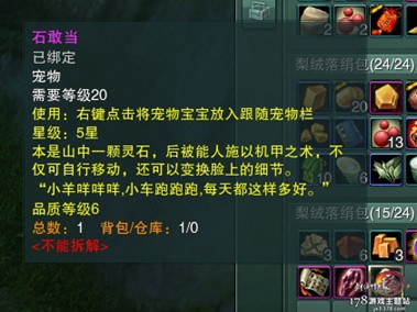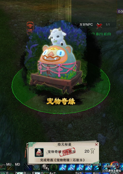 找到后右击箱子对话可以拾取起来然后拿回去找吴为有就可以了,吴为有依旧在成都溜达,还是要依靠海鳗焦点目标列表来找到吴为有,然后跟吴为有对话都对话完之后就可以拿到石敢当小羊宠物了: