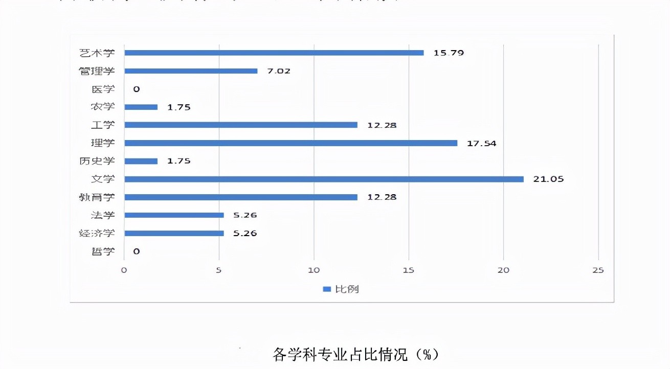 第二,学科与专业:本科专业58个,硕士学位授权一级学科8个,硕士学位授权二级学科(方向)36个,专业硕士学位类别3个(涵盖18个领域),学科专业覆盖工学、理学、农学、法学、文学、教育学、历史学、经济学、管理学和艺术学等10个门类。下图来源于《2019-2020学年本科教学质量报告》。