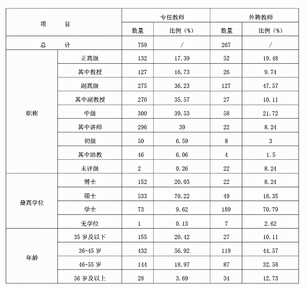 第三,师资队伍:据学校简介,专任教师789人,专任教师中教授、副教授394人,具有博士、硕士学位712人。根据《2019--2020学年本科教学质量报告》,专任教师759人,外聘教师267人,生师比20.22:1,高级职称407人,正教授127人,硕博士685人,其中博士152人,占比20.03%。