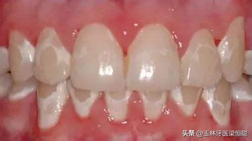 牙齿中的钙减少了,色泽就变成白粉笔色(白琧)感觉了。