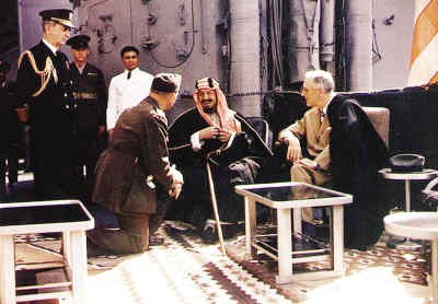 1939年第二次世界大战爆发,成熟睿智的政治家伊本·沙特保持中立,并在私下里采取亲英的立场。英国有人反对向沙特提供援助,他们说伊本·沙特国王在战争中并没有为盟国做过什么。英国首相丘吉尔却回答说:“我们给他东西,不是因为他做了什么,而是因为他没做什么。”1945年2月,伊本·沙特国王在停泊在苏伊士运河的“昆西”号巡洋舰上会见了从雅尔塔返回的美国总统罗斯福。一直把沙特视为自己势力范围的英国也立刻由首相丘吉尔亲自出面与伊本·沙特会谈,试图抵消美国的影响。雪茄烟从不离口的丘吉尔为了尊重伊本·沙特的信仰和习惯,在会见中从头到尾没有抽烟。1945年3月,沙特正式向轴心国宣战,并因此成为联合国的一个创始国。1953年11月9日,他在塔伊夫逝世。他的遗体运回利雅得,按瓦哈比派的规定安葬,至今沙特阿拉伯依旧由他的儿子们统治着。