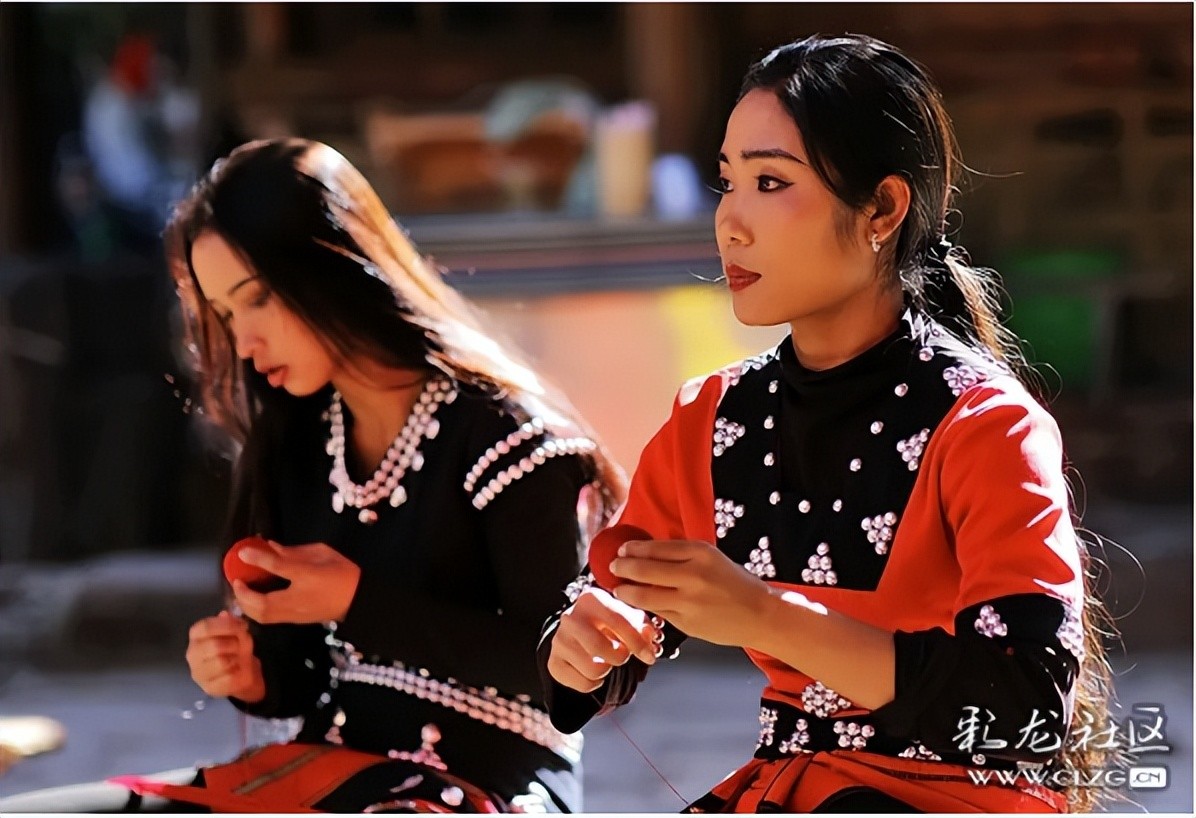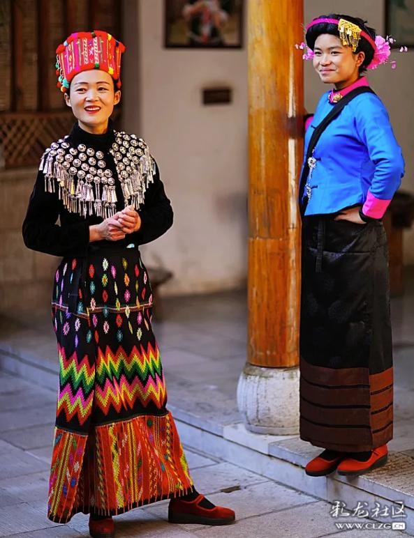普米族女子的服饰则更为精致,她们头戴金边花帽,帽上的装饰熠熠生辉。身着大襟短衣和百褶长裙,衣服上绣满了各种精美的图案。
