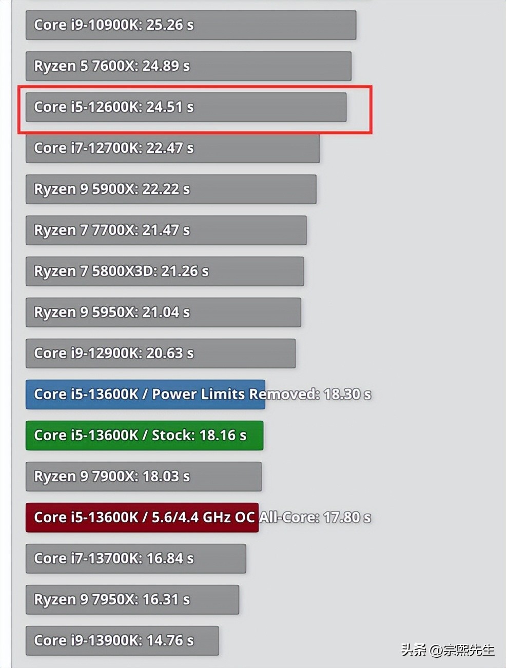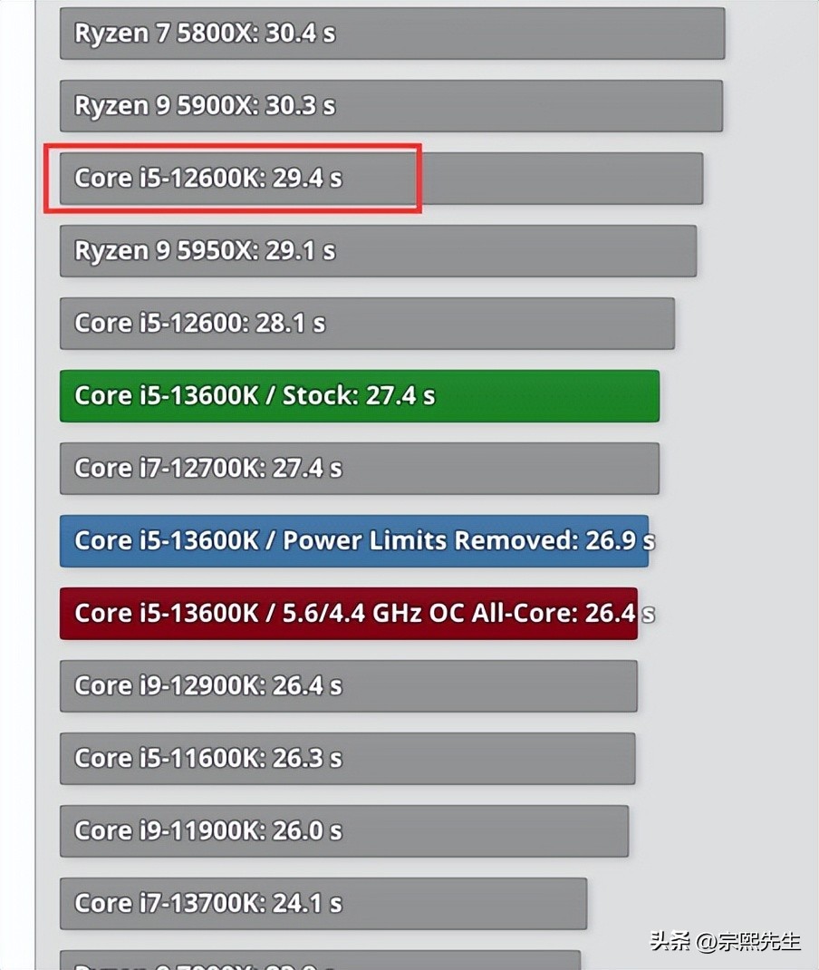 Core i5-12600K的用时为29秒,Core i5-13600K的用时为27秒。