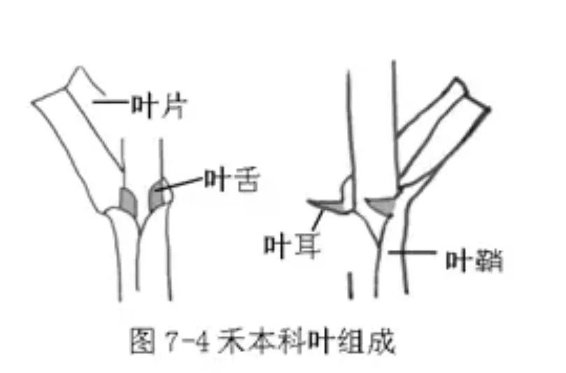 这么说可能有些朋友不懂,什么叶鞘、叶舌?咱先看下禾本科的叶片结构。
