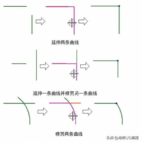 通过该命令可以将两条输入曲线延伸和/或修剪到一个交点来制作拐角