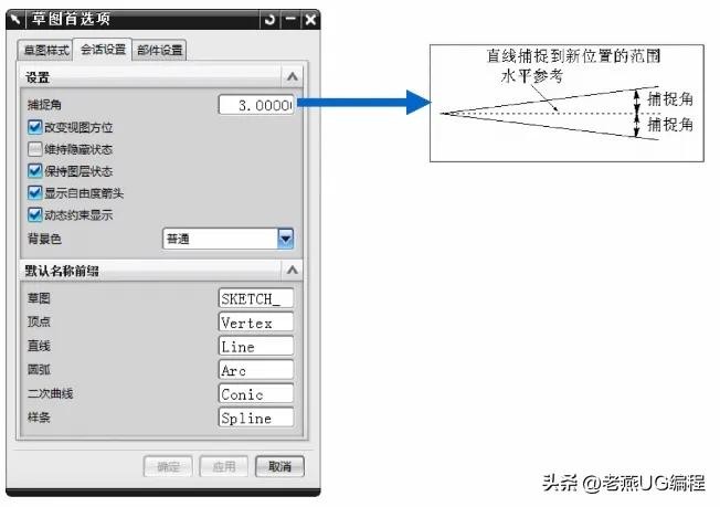 【草图参数预设置】是指在绘制草图之前,设置一些操作规定。这些规定可以根据用户自己的要求而个性化设置,但是建议这些设置能体现一定的意义,如曲线的前缀名最好能体现出曲线的类型。