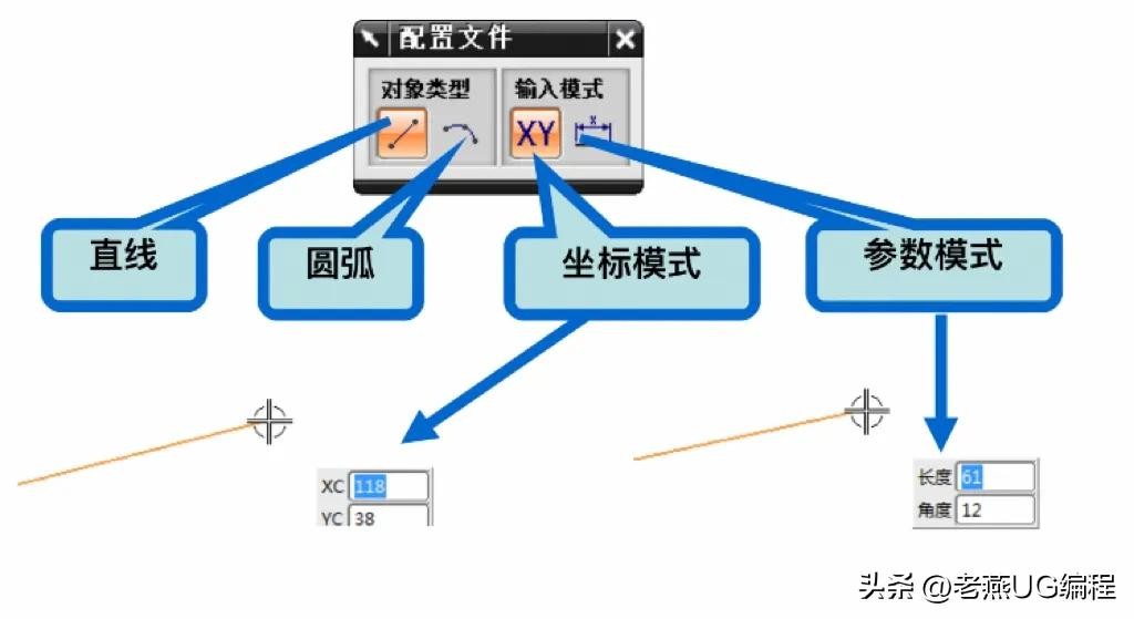 这三个对话框都提供了【输入模式】选项,含义与【配置文件】中相同。而【圆弧】和【圆】对话框还提供了【创建方法】选项,可以选择不同的创建方法和不同的输入模式来创建圆弧或圆。