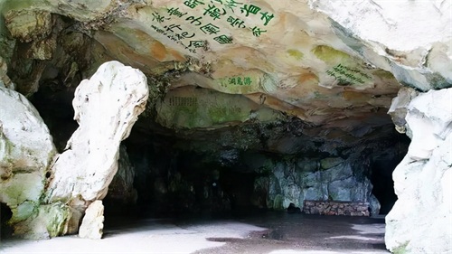 王阳明初抵龙场后,便披荆斩棘搭建了一间茅草房。茅草房非常小,只有齐肩高,仅够宽慰旅途劳累。王阳明以原有的荆棘为篱笆,垫土为阶,台阶非常低矮,若有若无,以致让人感觉不到它们的存在。不久,王阳明发现了一处钟乳洞,便将自己的住处搬到洞中。初名“东洞”,后来王阳明效仿家乡的阳明洞,把它更名为“阳明小洞天”。钟乳洞所处的位置较偏僻,四周很荒凉,而王阳明却觉得这是因为钟乳洞不容他人,专等自己到来。王阳明搬入此洞后,乐其幽静,悠然自得。王阳明以乐观的态度面对艰难处境,尽管他与龙场当地人语言不通,但他渊博的学识、开朗的个性,很快获得了当地人的尊敬与喜欢。