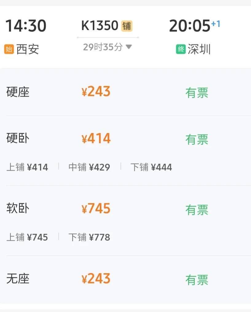西安到深圳K1350次快车:仅243元 沿途经停18站,曾经的旅客这样说