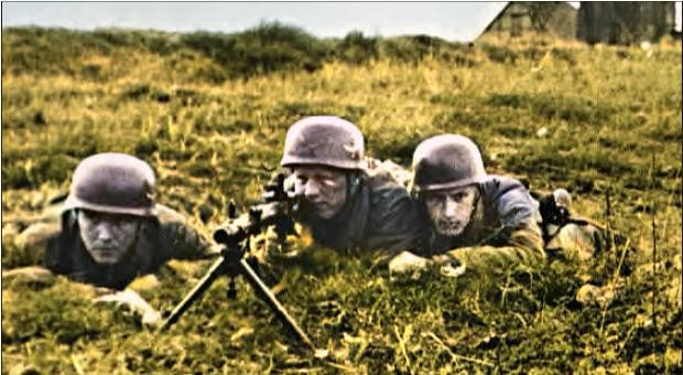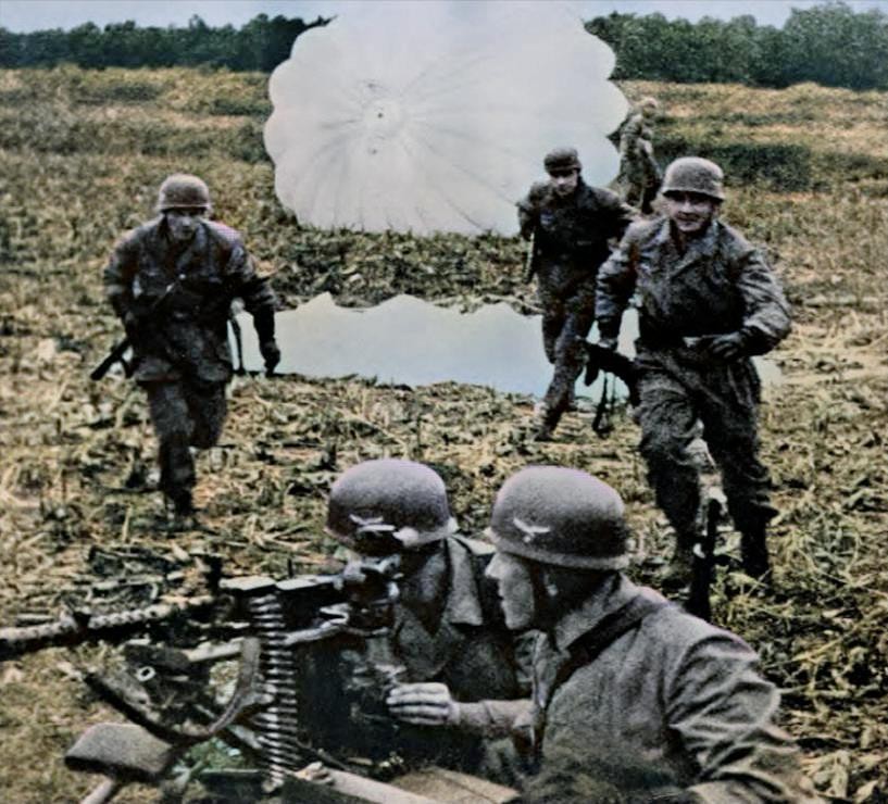 操作MG34轻机枪的德国伞兵三人小组 MG34机枪是德国伞兵中前期能过得到的火力最猛的武器了