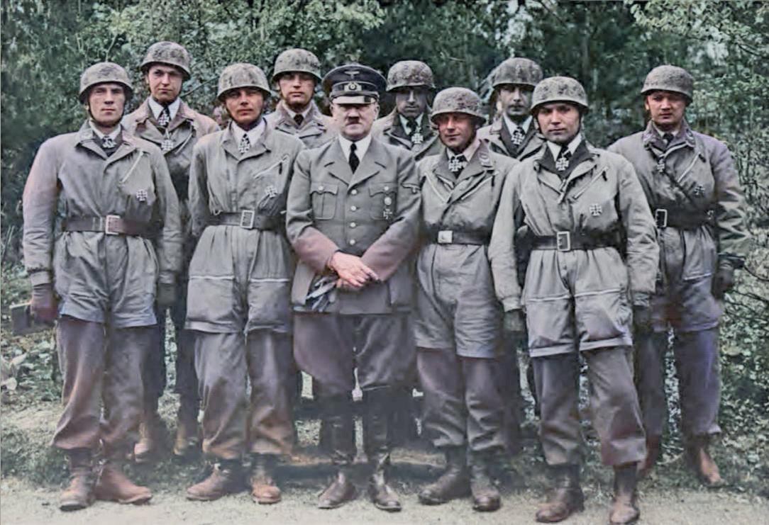 希特勒与几位刚获颁勋章的突击埃本埃马尔要塞的伞兵将士合影留念 他们的优异表现的确值得为其配备更好的武器