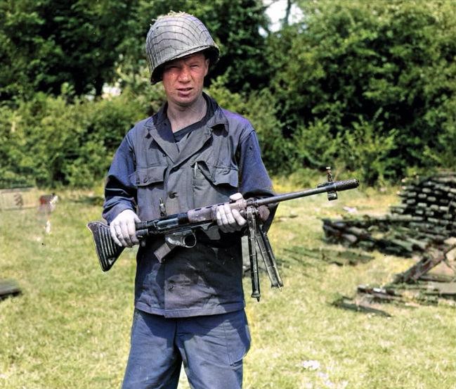 诺曼底战役期间使用FG42伞兵步枪进行射击作战的德国第六伞兵团的精锐伞兵
