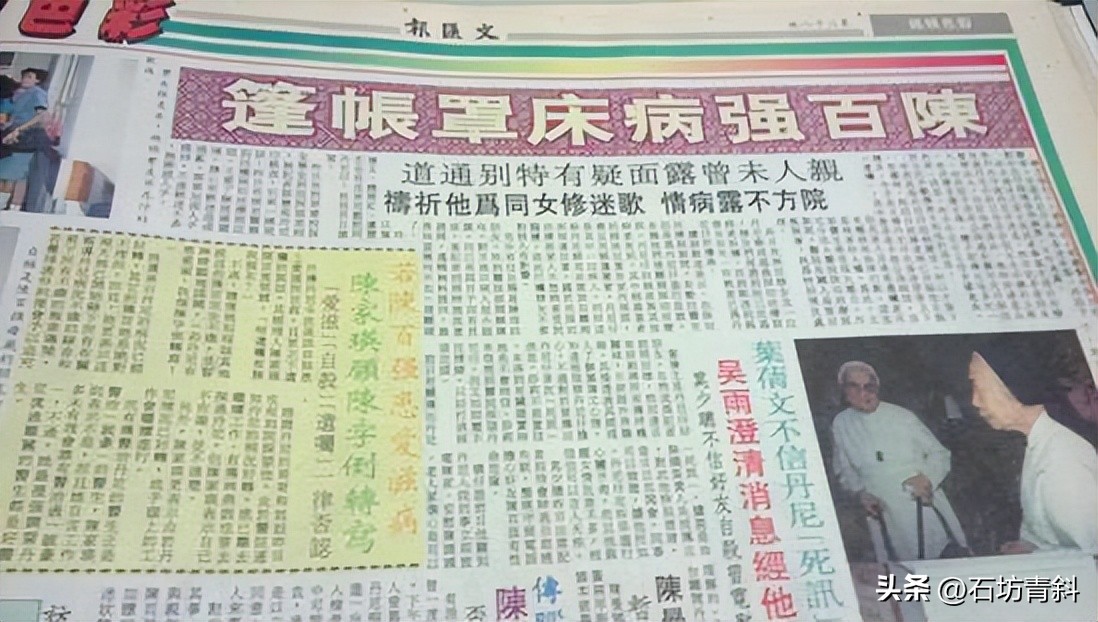 特别是在那段时间的公开活动时,他神情呆滞,反应迟钝,行路都要由人搀扶。更有消息传出,陈百强在出事前已有两次秘密入院。