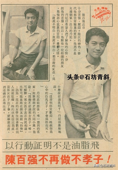 在这种心理状态下,陈百强只上到中学四年级便中途辍学,只身一人离开家庭闯荡社会。