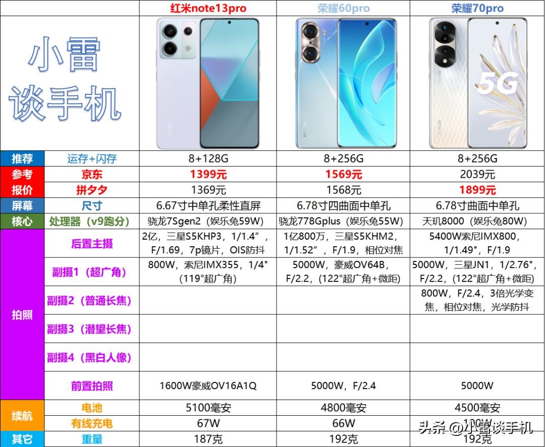 对比上一期榜单,鉴于荣耀70pro降价,红米note13pro+、真我11pro+无法上榜,荣耀70下榜。