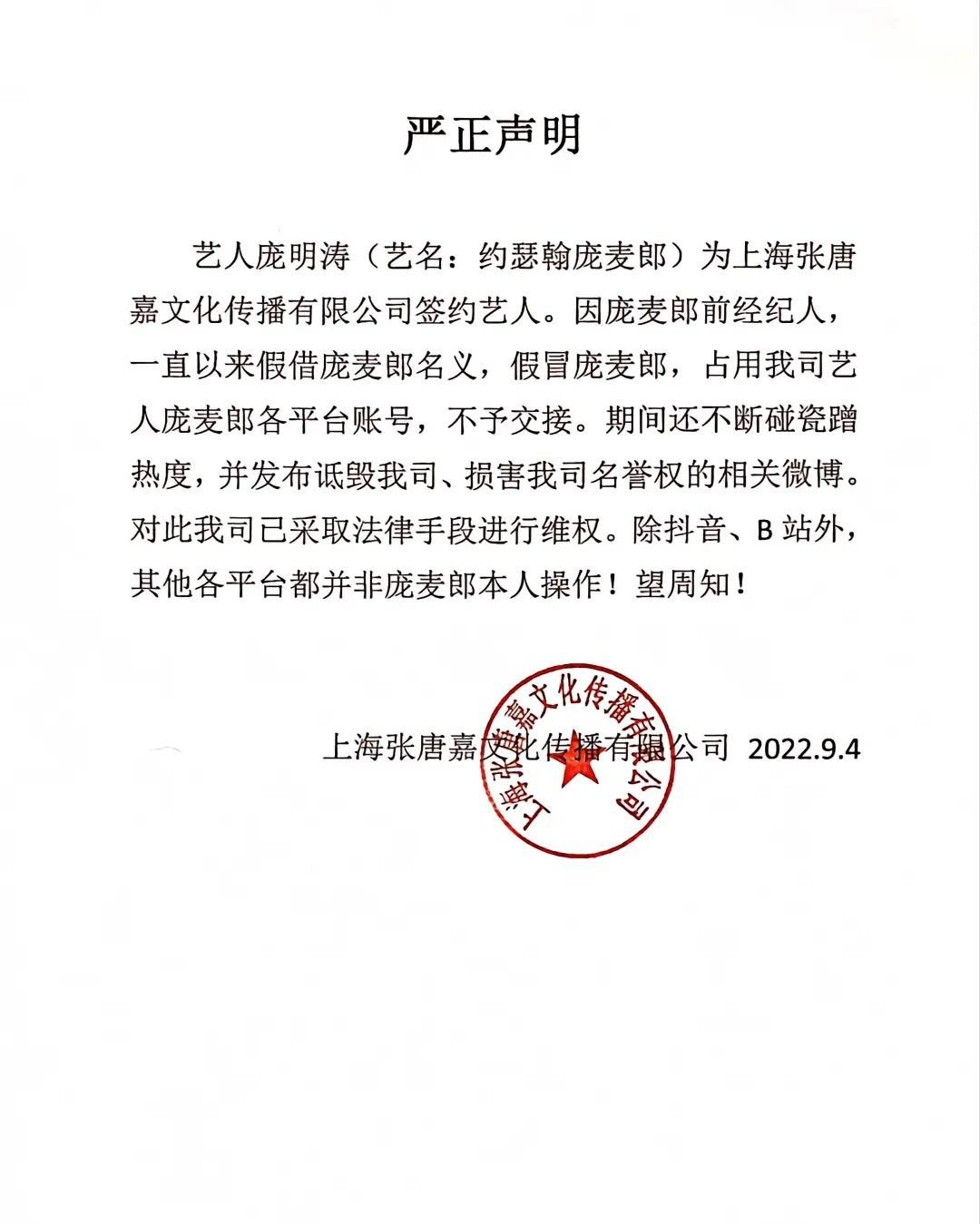2021年9月,庞麦郎在抖音上注册了一个账号,然后开始分享他在外演出的视频。其中大多数视频都是庞麦郎在酒吧的演出视频。再后来,庞麦郎又和上海一家经纪公司签约,想要在短视频行业闯出一片天。
