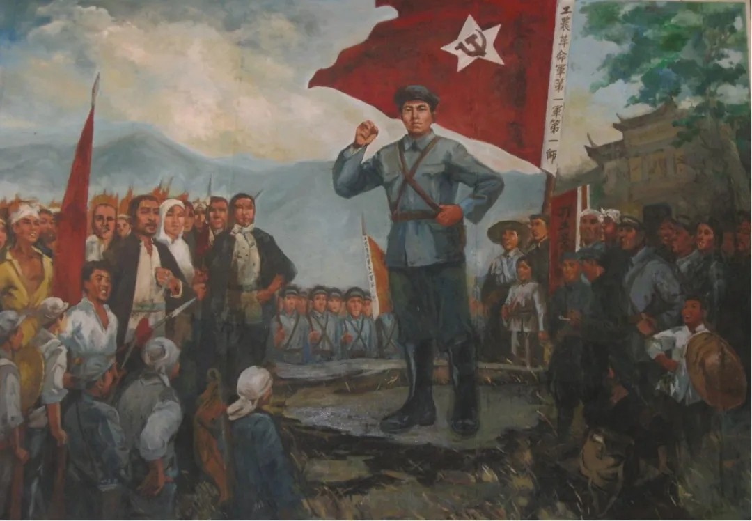 之后这支军队克服了敌人的围剿空袭,跨过山水与酷热,最后风尘仆仆地到达了井冈山,终于建立起革命摇篮之时,它身披红色,灼热的点亮中华大地。