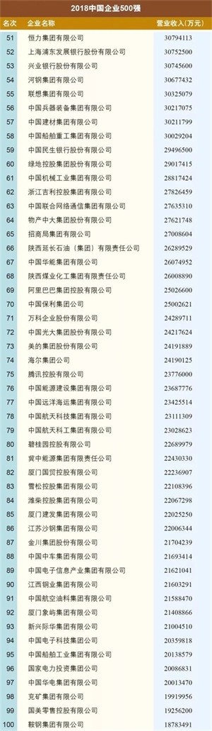 在“2018中国企业500强”排行榜中,国家电网、中国石化和中国石油分别以23581亿元、22097亿元和22034亿元营收稳居前三。