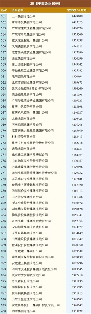 9月2日上午,经济观察网记者从2018中国500强企业高峰论坛现场获悉,中国企业联合会、中国企业家协会在陕西西安发布了2018中国企业500强、中国制造业企业500强、中国服务业企业500强、中国100大跨国公司名单及其分析报告,并发布了2017年度中国企业效益200佳及其分析报告。