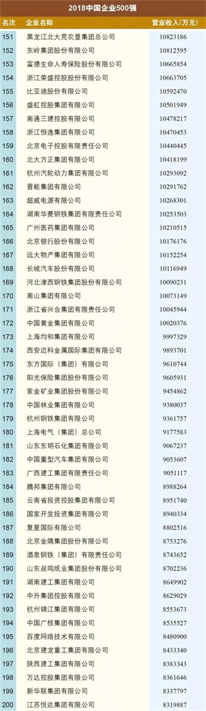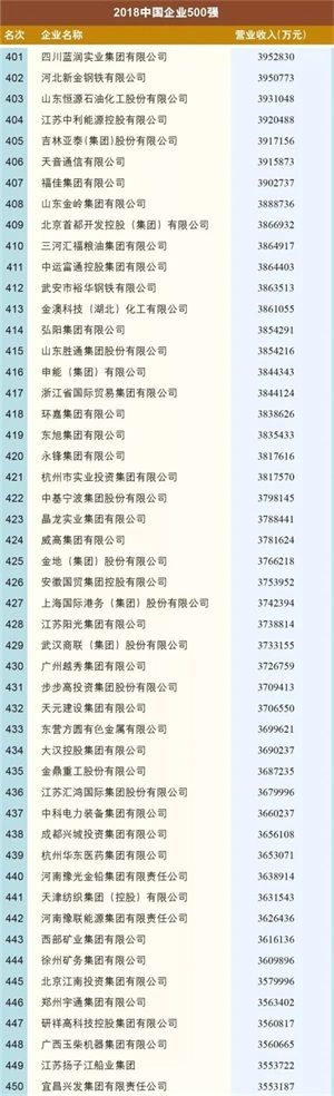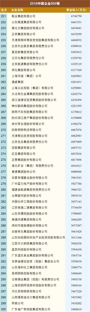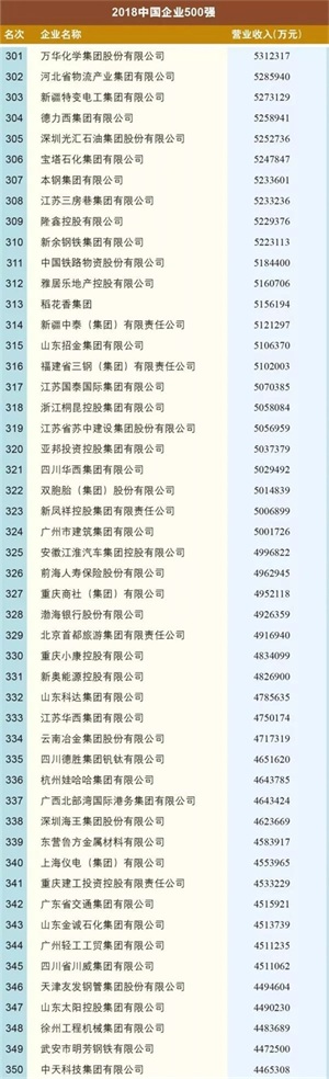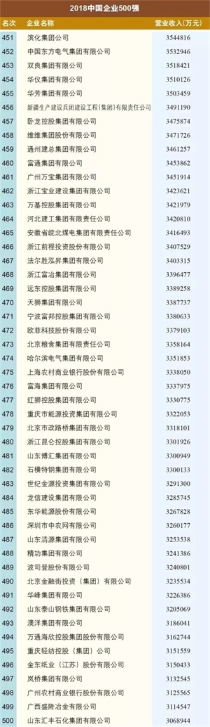 “2018中国企业500强”入围门槛首次突破300亿元大关,实现了16连升。这前三甲还是国家电网、中国石化和中国石油,这第500名幸运儿则是成立于1997年的山东汇丰石化集团有限公司。