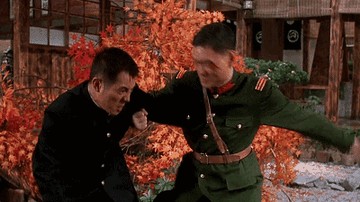 据说这场戏周比利棋逢对手打得相当过瘾,结果一个没收住把李连杰打成骨折进了医院,而正是因为李连杰的武打戏太过精彩。
