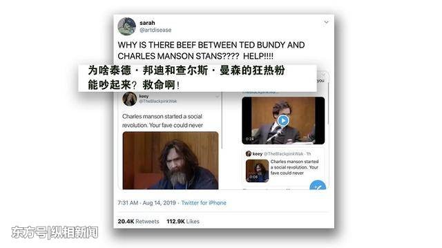 推特的热搜起于一场争执,查尔斯·曼森(美国60年代连环杀人魔,拥有数十名信徒)和泰德·邦迪的狂热追随者在推特上打起了口水仗,主题是“最厉害的连环杀手到底是谁”?