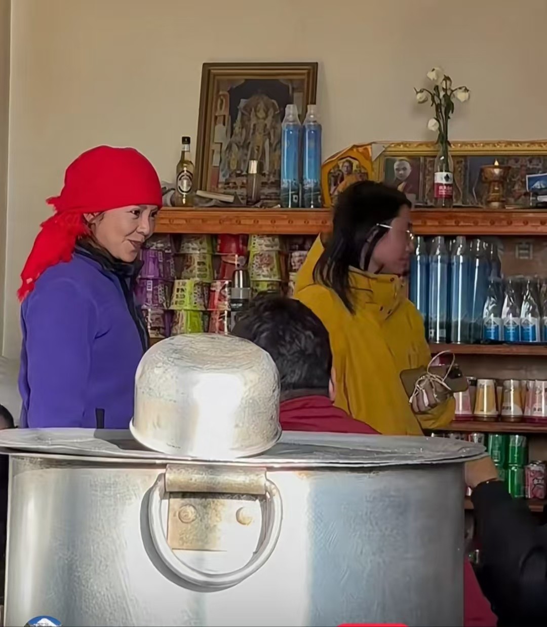 在拉萨冈仁波齐转山,朱迅与当地人文融为一体,完全没有公众人物的架子,坐在座位上,吃着一份最普通的面。