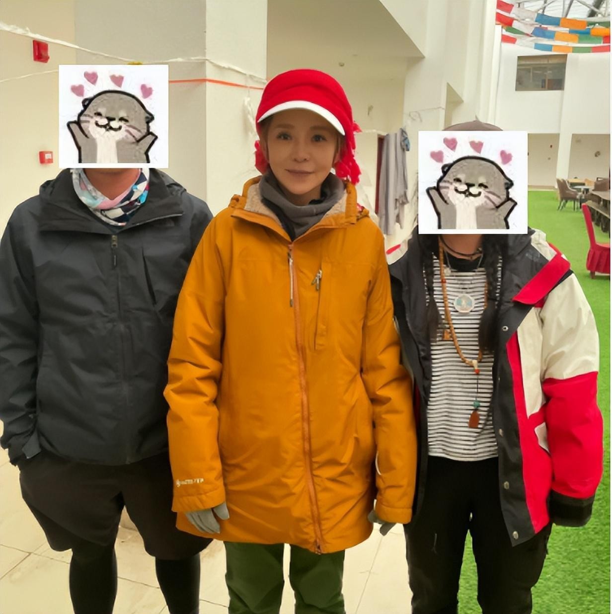 还有网友晒出了和朱迅姐姐的合照,照片中的她上衣橙色,裤子绿色,头巾红色。