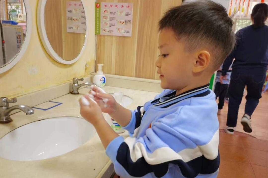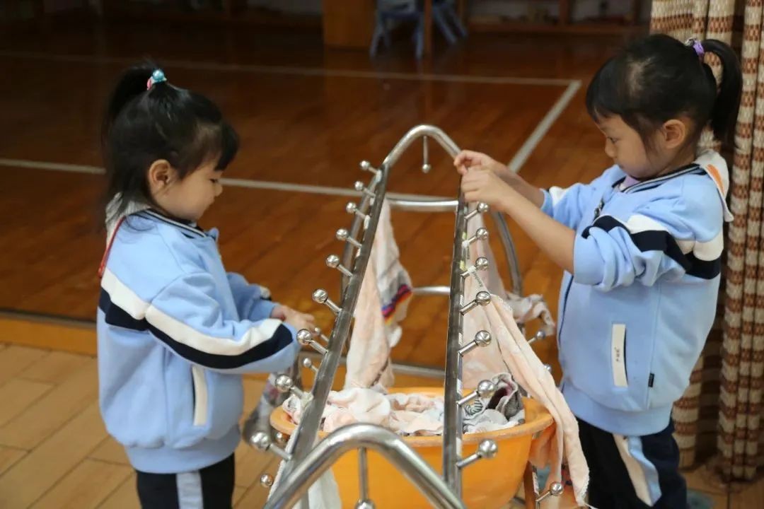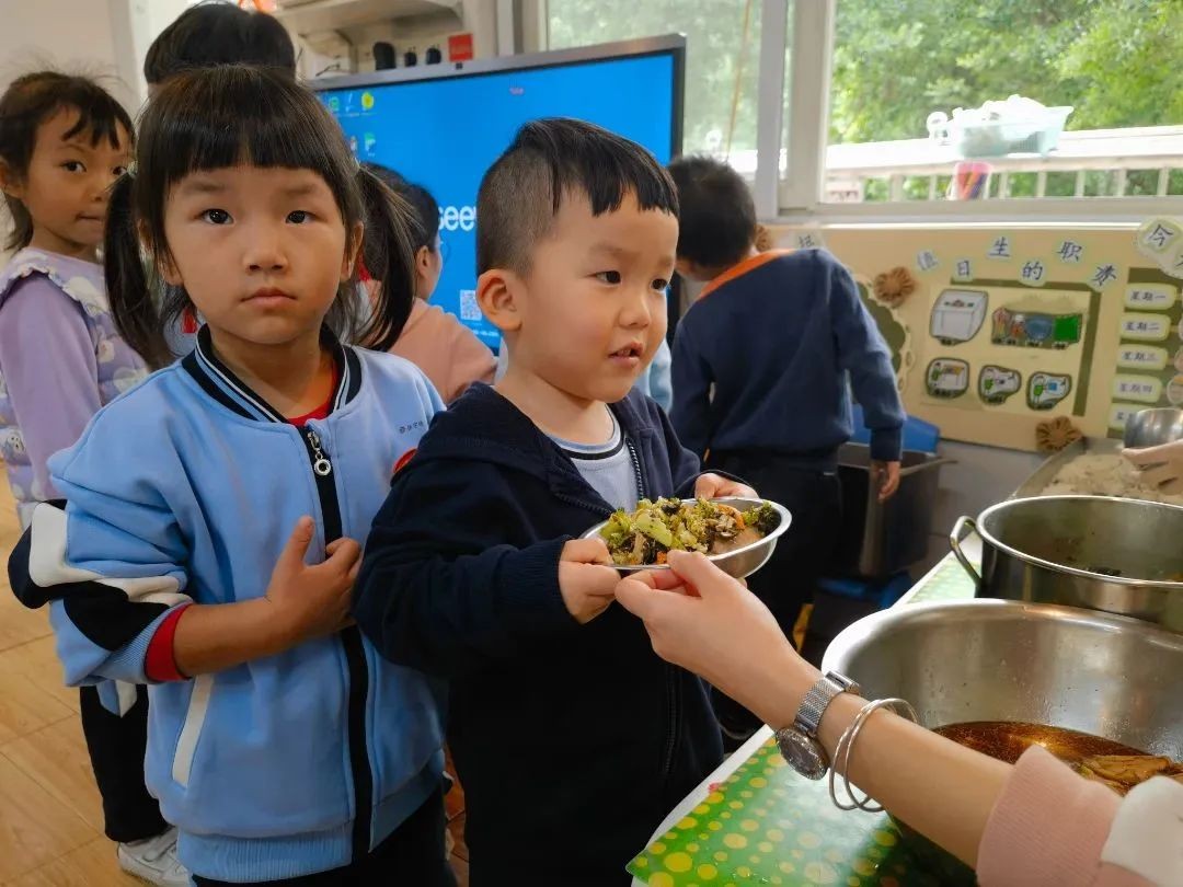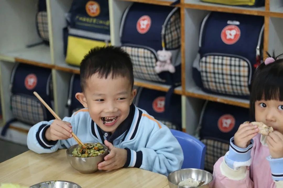 “咕噜咕噜”,能量补给时间终于到了,孩子们自主盥洗,独立进餐,小小的身影让家长们看到了大大的成长。
