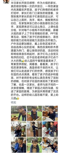 成长的惊喜,蜕变的感动,家长们留下了自己真挚的感受,美好的时光是短暂的,但爱的声音久久在回响,家园共育我们一直在路上!