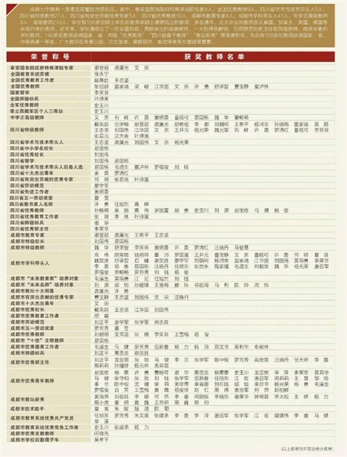 近年来,七林涌现出一批全国知名、贡献突出的竞赛教练,一大批特色鲜明、引领群芳的班主任和风格独特、成绩卓著的学科教师。140多名教师获得国家、省、市级“优秀教师”“四川骨干教师”“教坛新秀”等荣誉称号......