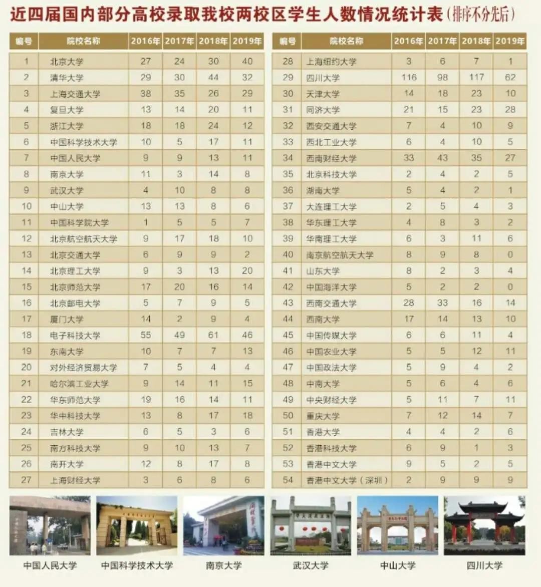 北京大学录取13人,清华大学录取17人,上海交通大学2人,复旦大学5人……