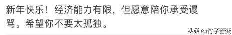 “新年快乐,经济能力有限,但愿意陪你承受谩骂,希望你不要太孤独。”