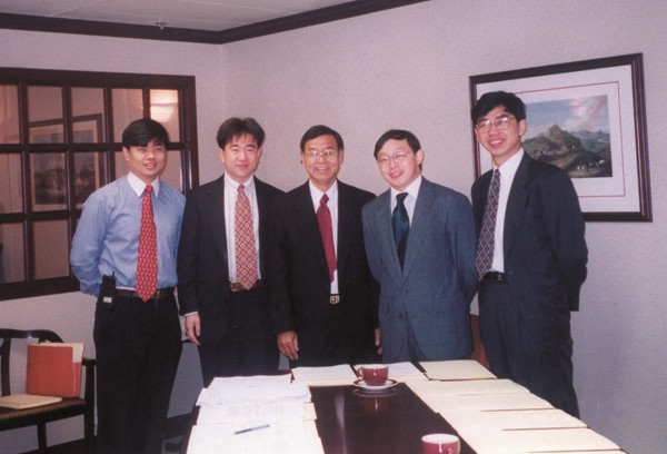 亚信早期合影,从左至右依次为丁健 赵耀 刘耀伦 田溯宁 刘亚东